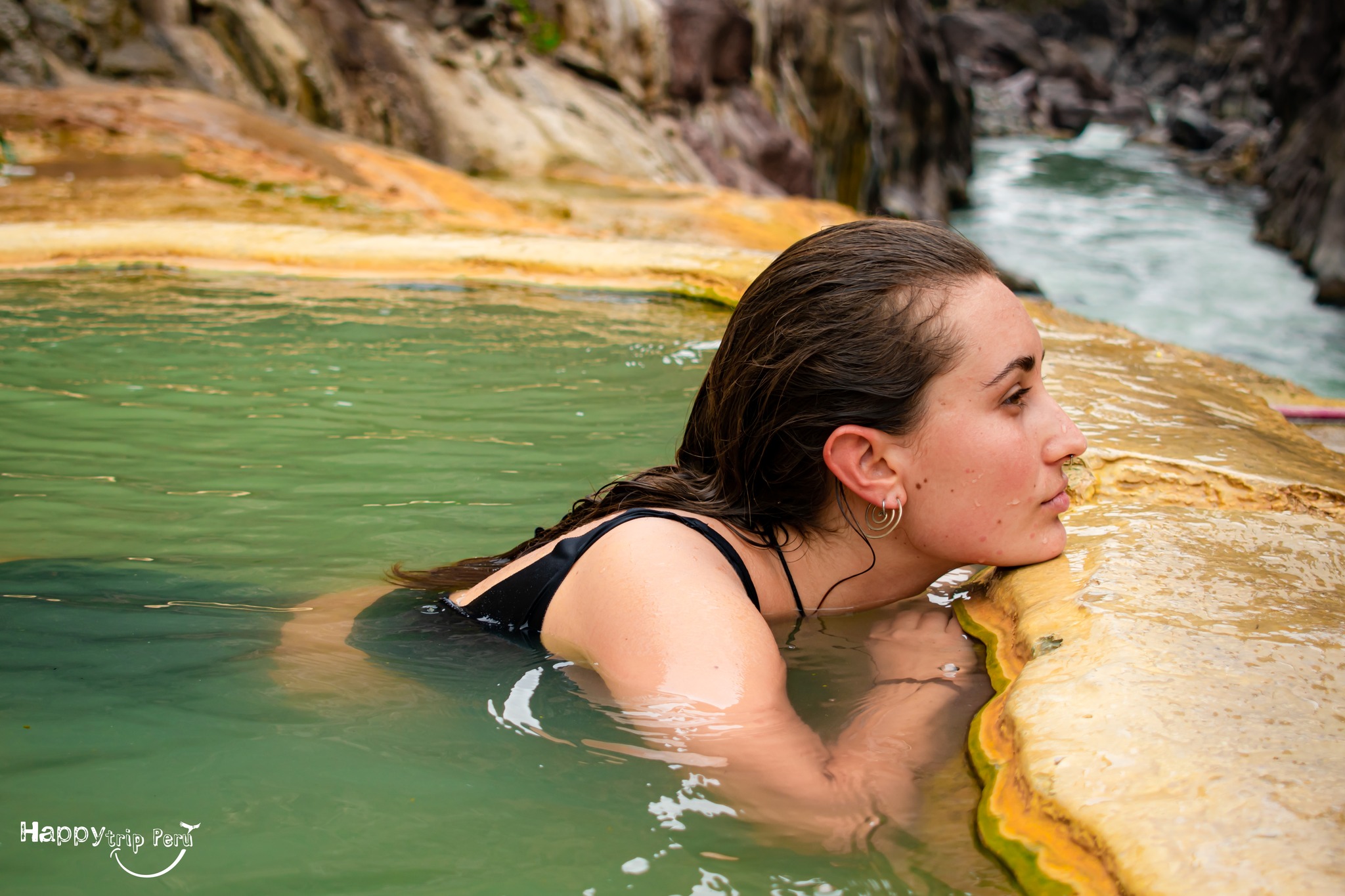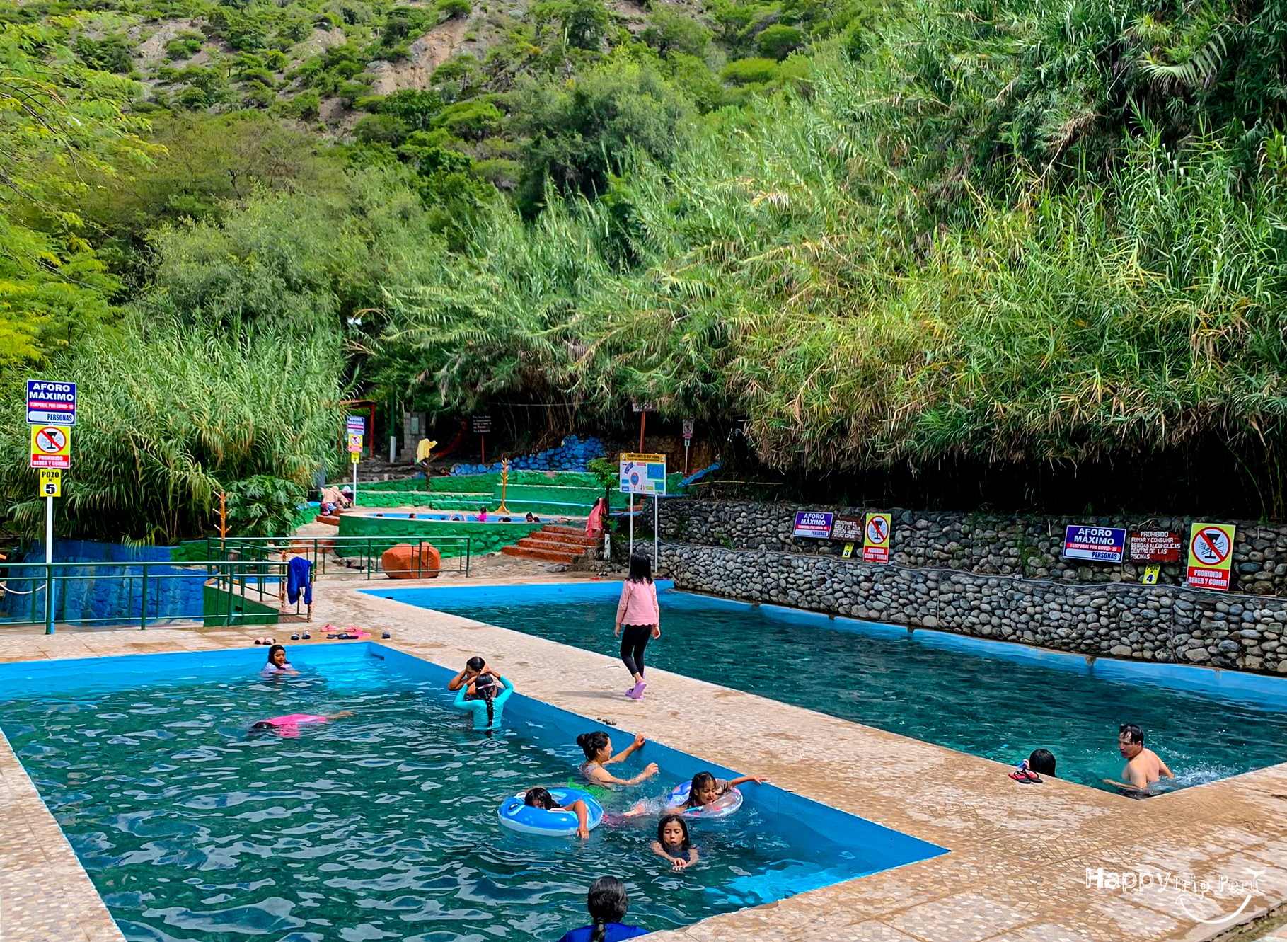 ubicado a las orillas del Río Pachachaca y el cañón del mismo nombre, formada por ojos de agua que filtran del las rocas de las cuales tienes colores diferentes adquiridos por las sales minerales (sulfato, carbono y cloruro) que tienen un gran poder curativo al que entra a esta belleza natural.